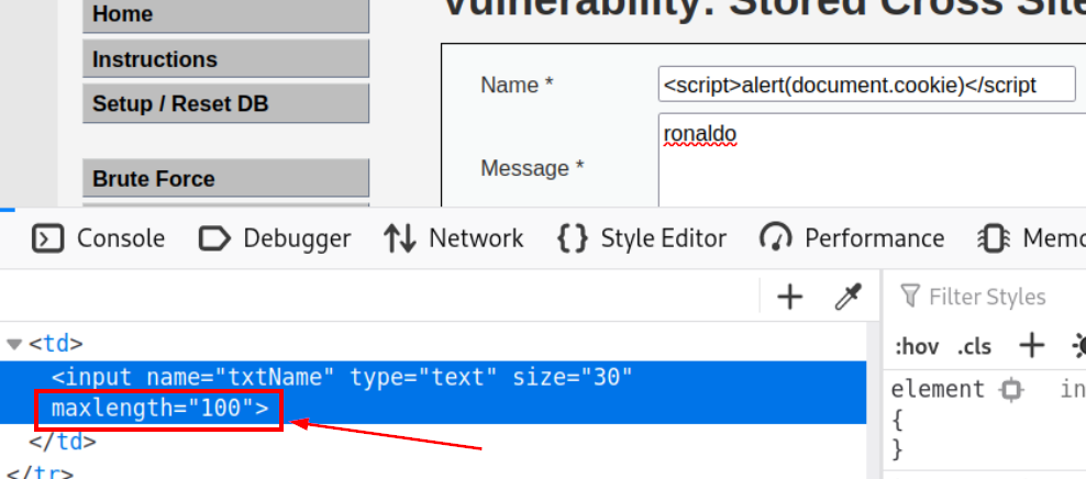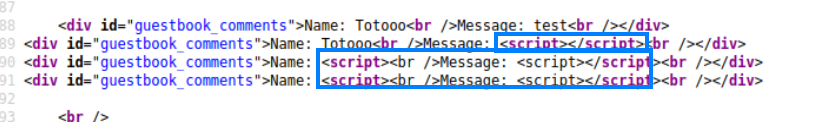 Tag tersebut tidak terencode. Maka kita bisa langsung melakukan serangan pada kolom nama maupun message (pada kolom nama dan message, kita harus ganti maxlength dengan inspet element terlebih dahulu).