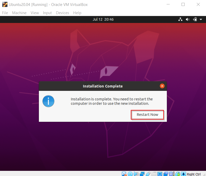 Ketika proses penginstalan selesai. Kita akan diminta untuk merestar mesin kita. Klik “restart”.